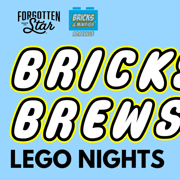 Calling all LEGO enthusiasts for a night of building and sipping at Forgotten Star Brewing! Get your friends together, or that special someone, and join us and the team at Bricks and Minifigs Roseville once a month! There will be prizes for those spectacular builds, but we’re keeping it low pressure with the focus on FUN!
