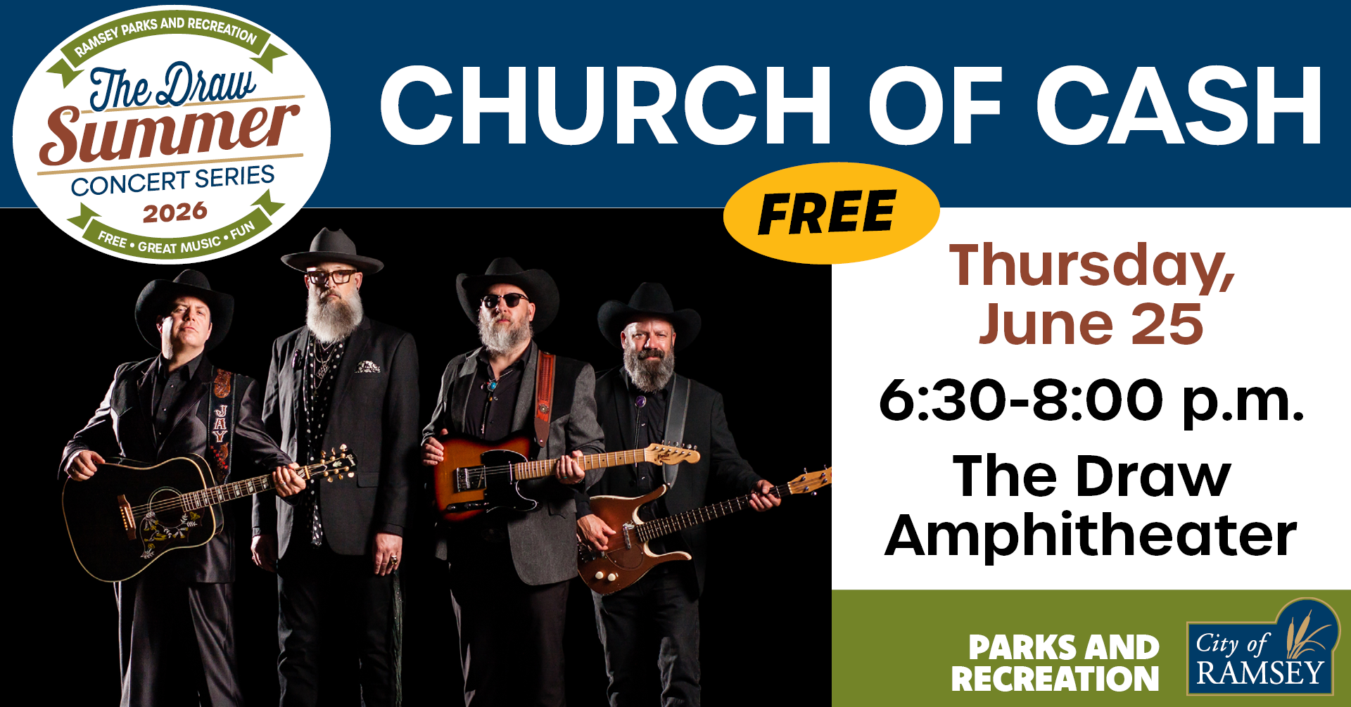 With a deep respect for Cash’s timeless catalog and a passion for performing, Church of Cash delivers everything from early hits like “Folsom Prison Blues” and “I Walk the Line” to the powerful late-era ballads of the American Recordings. But they’re more than just a tribute—they’re a spiritual revival of classic American music, offering a fresh yet faithful interpretation that resonates with audiences of all generations.