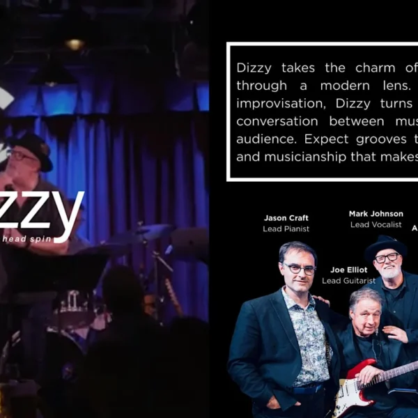 While the individual members have spent years as first-call musicians for national tours and major recording projects, they came together as Dizzy to merge their diverse backgrounds in Jazz, R&B, and Funk. Their collective history is defined by a shared mission: to honor the Great American Songbook while infusing it with sharp lyricism, playful improvisation, and a contemporary, story-driven energy. Today, the group is celebrated for their tight-knit chemistry, high-level musicianship, and the ability to turn a jazz set into a warm, engaging experience filled with new songs and quick-witted storytelling.